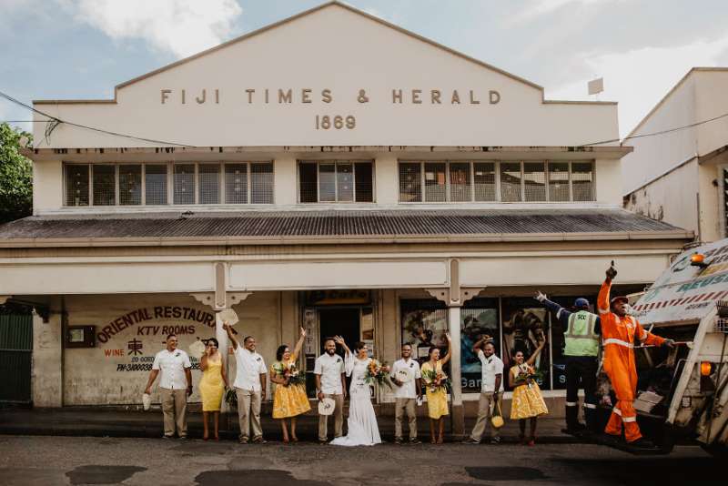 ▼新娘戲劇性地倒下,彷彿不敢相信自己是最幸福的人。