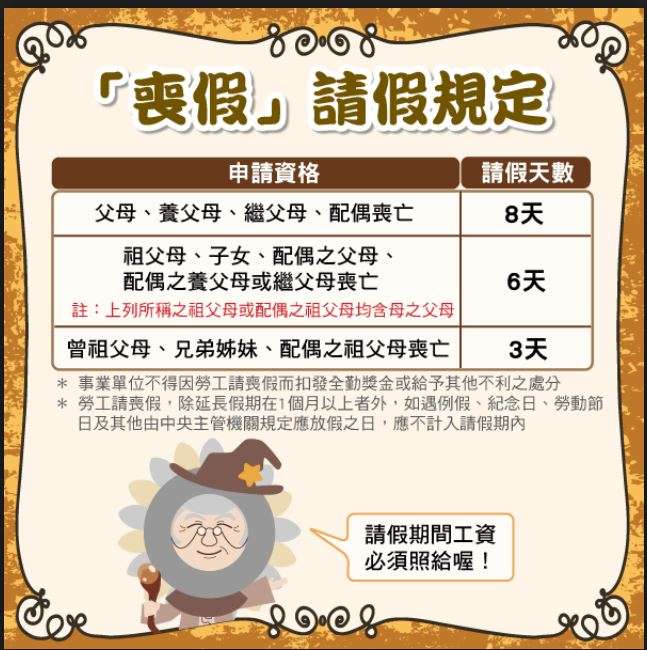 ▼不過事實上,在勞基法的請假規定中,喪假規定已經明文列表了,而且請假期間也應該照常給付工資。大家在請假的時候,也務必注意到自己的相關權益。