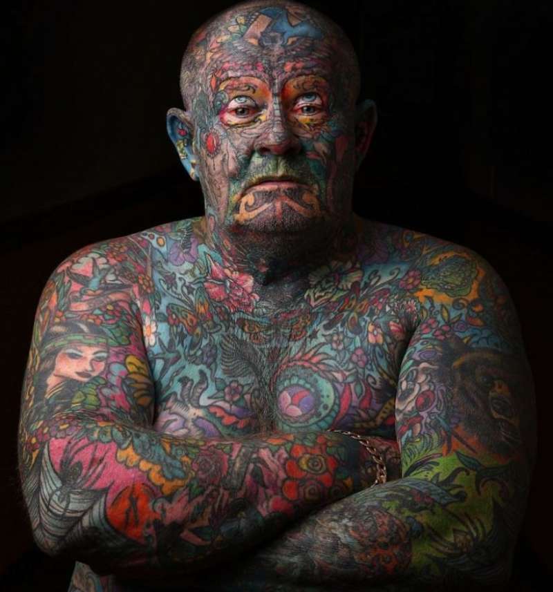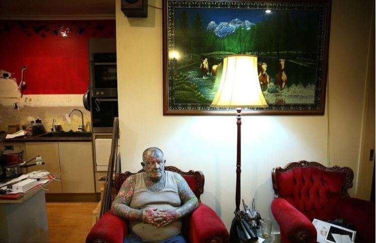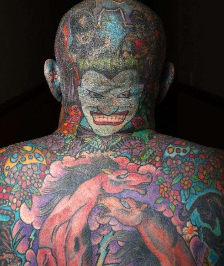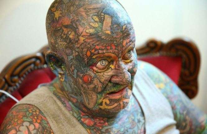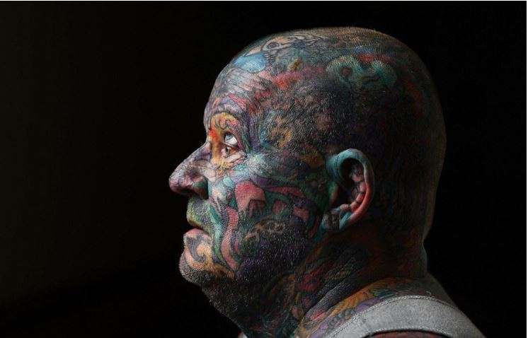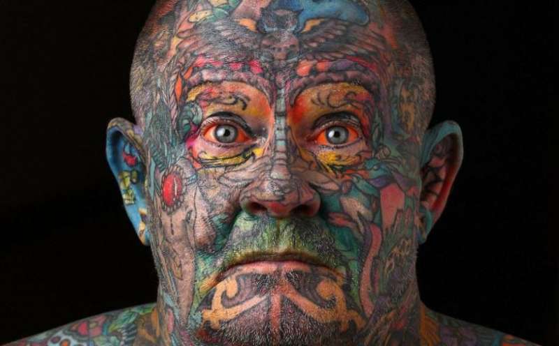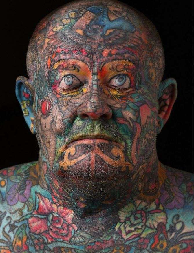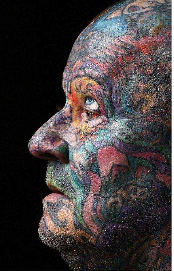 ▼全身上下、他甚至連眼瞼上都刺上了刺青,就連閉上眼睛他都是看起來像是睜著眼睛,似乎想表達些什麼。