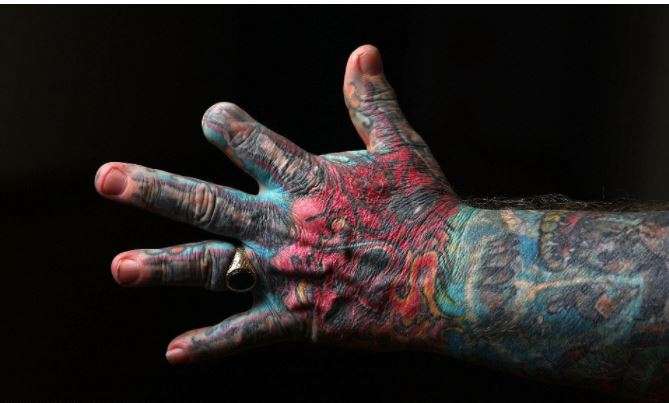 ▼他18歲時開始愛上刺青,約翰表示:「我的身體每一個部分都有刺青,我的心理治療師認為這是一種自我厭惡的投射,但我愛死這些刺青了,可能有點太超過,所以這看起來像是我刻意讓自己的身體承受許多疼痛。」