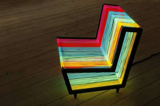 ▼各種顏色的發光電線做成的迪斯可椅子,盡情享受。