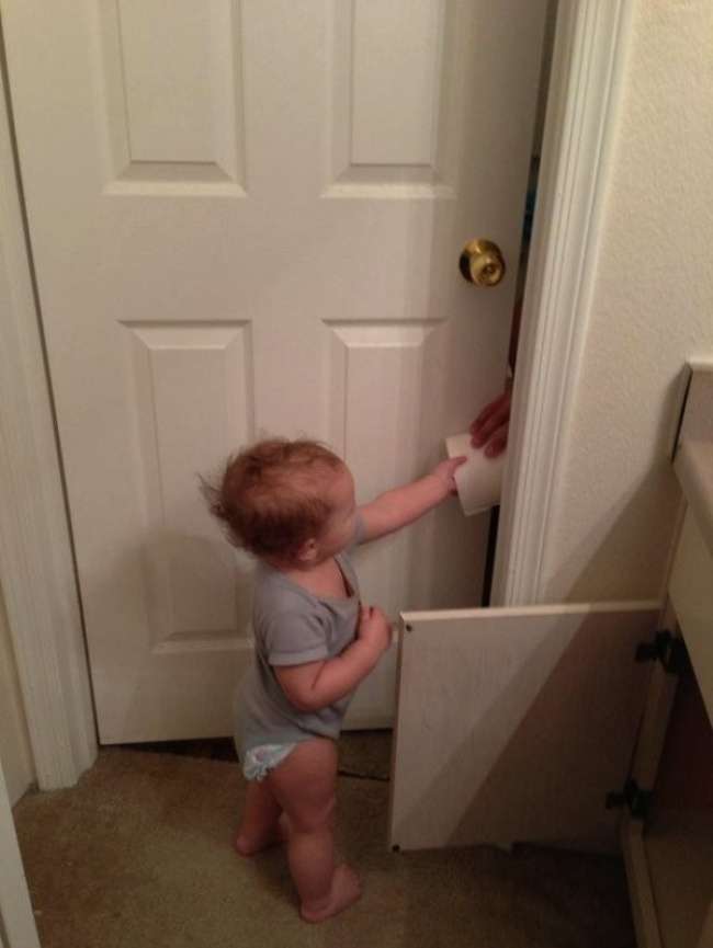 ▼廁所沒紙了,爸爸的小寶貝幫忙送!
