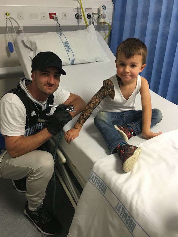 ▼班傑明也履行承諾,一一幫這些病童細膩作畫,完全沒有因為臨時性刺青而偷工減料。
