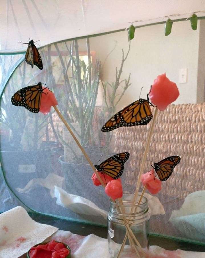 ▼不久前她突然對帝王蝶非常著迷,於是在做了許多研究和瞭解之後,她直接在家中開始養殖帝王蝶。