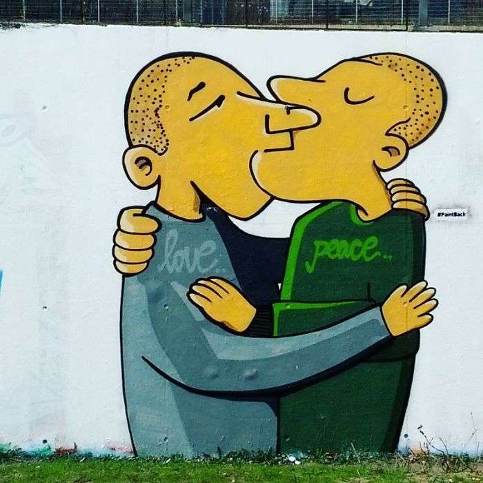 改造後的塗鴉非常溫馨,他們用最好的方式反對仇恨,也讓所有人看到了愛的力量~