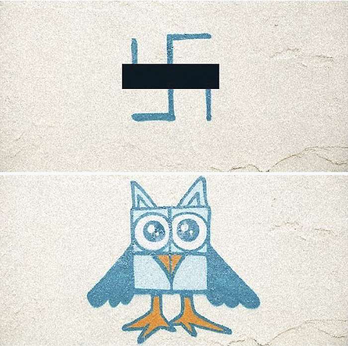 ▼很多藝術家參與這項活動,在各大城市改造「卍」字符。這些照片被PO到社群網站後,引起了網友們的關注,一些人受到啟發,走到街頭用同樣的方式改造塗鴉。