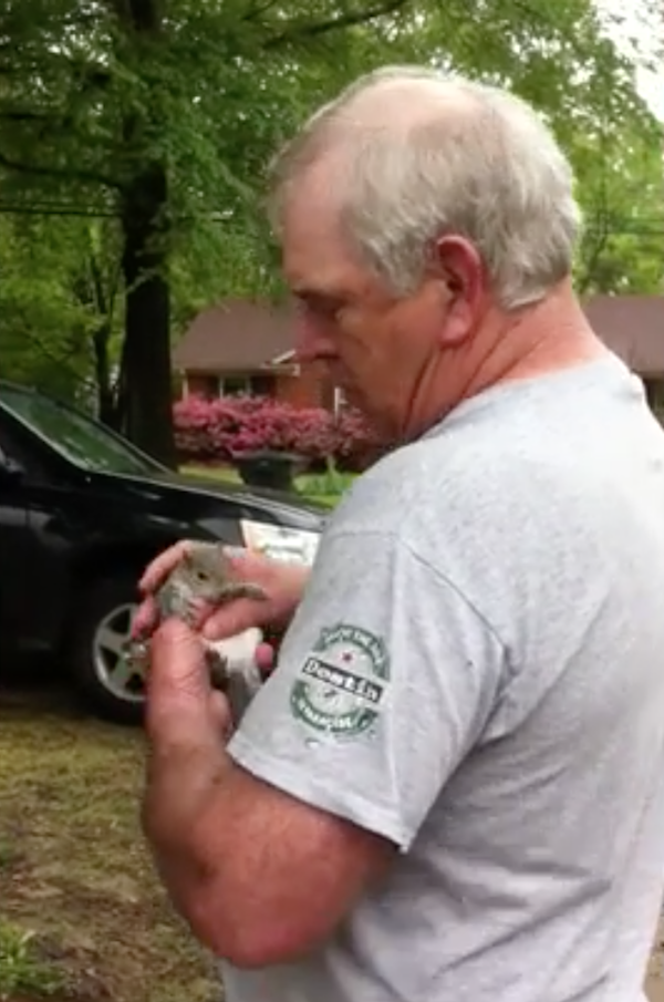 ▼最初,大叔打算野放這隻松鼠,他的眼晴看起來柔情蜜意,一切溫馨極了。
