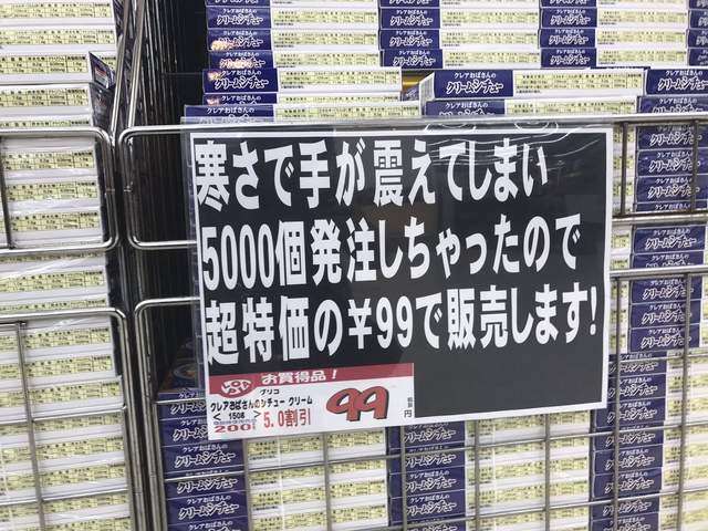 ▼「天氣太冷手抖了一下就不小心叫了5000個進來,所以用99日圓的超級特價販賣!」