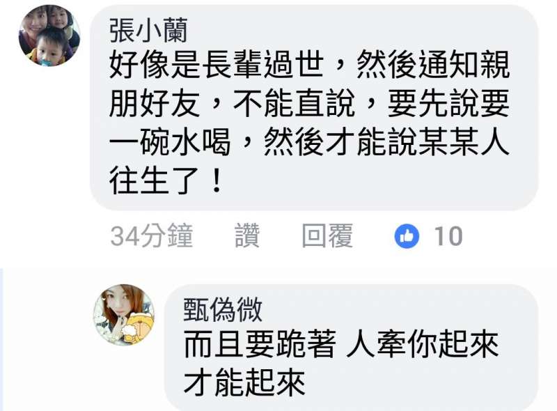 ▼網友看完之後紛紛留言表示:「長知識了!」許多網友也在留言處分享自己以前報喪時的經歷。