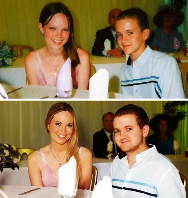 ▼我表弟(左)在7年前亂入了未來老婆的家庭照,那時他們根本互不相識。