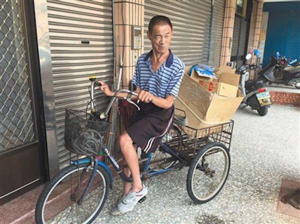 ▼嘉義縣56歲的許書誠因為罹患腦性麻痺,行動頗有不便,平日靠做資源回收過活。當時朴子市的37歲婦人李唯禎得知他的狀況,就固定把店內回收的紙箱交給許書誠,兩人也因此搭起友情的橋樑。
