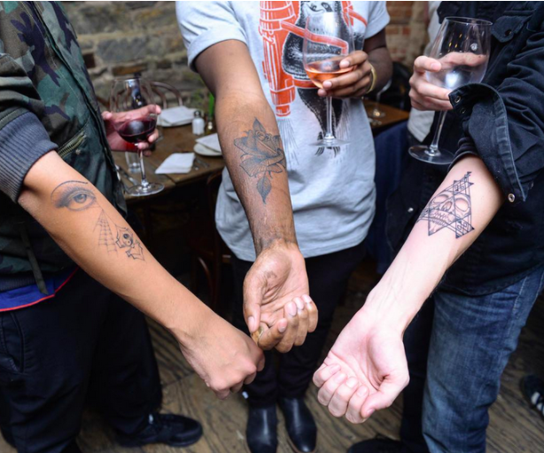 ▼參與計畫的人們,互相秀出「獨一無二」的刺青紋路,沒有人不滿意手上的驚世傑作。