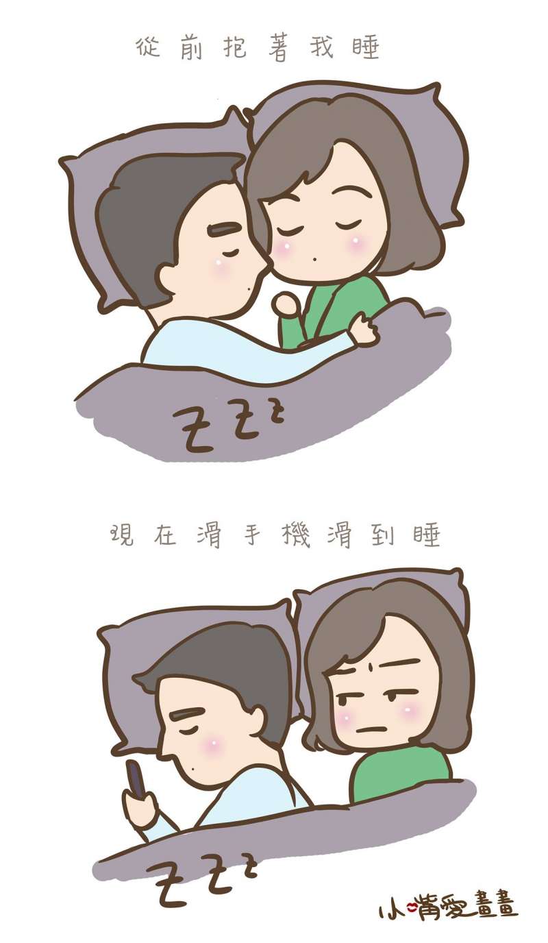 ▼也許時間久了也會變成「曾經抱抱睡,現在手機滑到睡」,感覺手機才是最強大的「小三」。