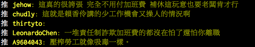 ▼文章被網友轉貼到PTT上,又激起了一番熱烈討論。網友認為新法真的很誇張,加班「完全不用付加班費」,換成補休「也要老闆肯才行」,這樣下來加班勢必變成「做功德」。