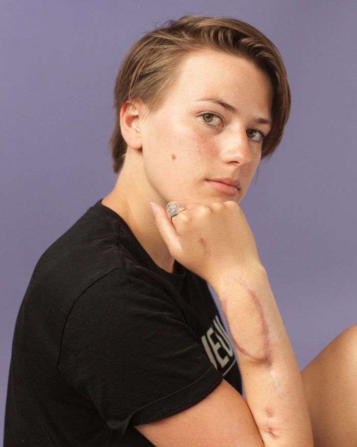 2018年01月17日我們總是會把傷疤跟醜陋、危險、犯罪這些詞語聯繫在一起,看到有傷疤的人,會覺得他是壞人。英國的攝影師Sophie Mayenne希望通過她的攝影作品「傷疤背後」來改變人們的這些觀念,這是一系列令人心酸的人物照片,一起來看看他們的傷疤和背後的故事吧。