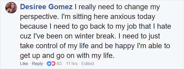 ▼「我真的需要改變了,今天我一整天都很焦慮,因為休完假馬上要回去上班,做一份自己不喜歡的工作,我需要掌控我的人生,讓自己重新開心起來。」