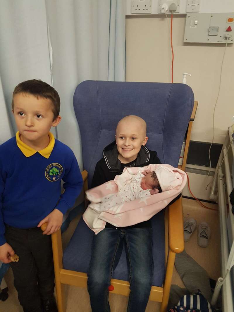 ▼沒想到時間一下流逝到十一月,Bailey仍在勇敢對抗病魔。支撐他弱小心靈的唯一理由,就是妹妹Millie的誕生!