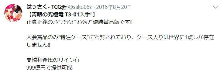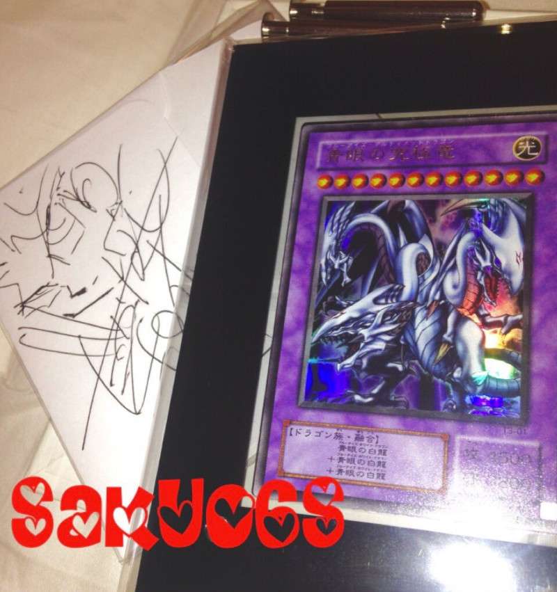 ▼日本網友はっさく在推特上介紹說,這張「青眼究極龍」是亞洲冠軍的優勝獎品,被裝在大會特製的盒子裡,上面還有《遊戲王》作者高橋和希的簽名,絕對是世界上獨一無二的。
