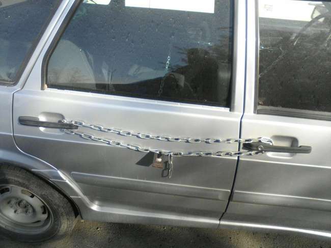 ▼9. 警察先生忘了他的腳踏車鎖,所以他利用了現成的工具…