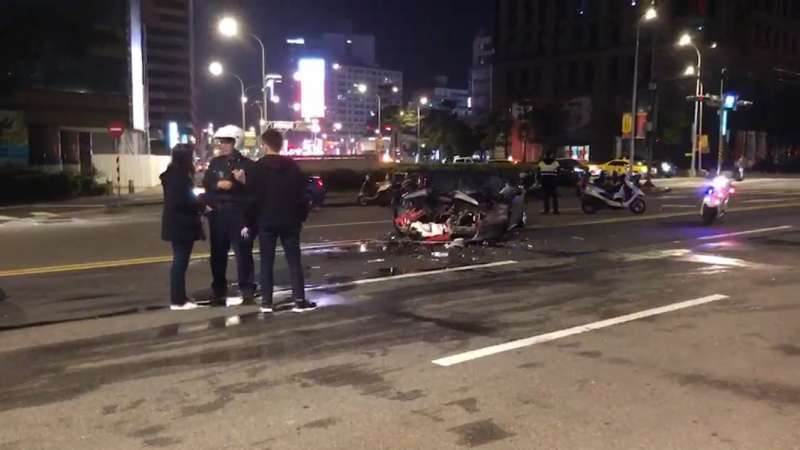 ▼事故發生在松高路與市府路交叉口,法拉利急轉彎,疑似控制不當,直接撞向客運。