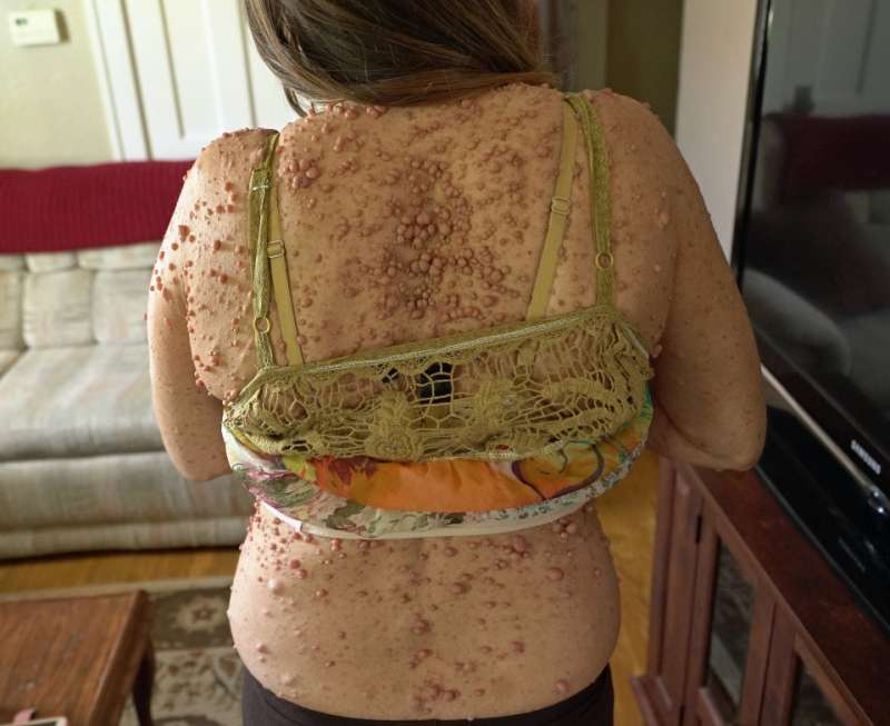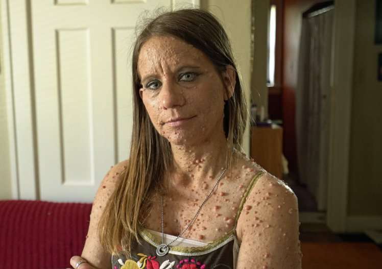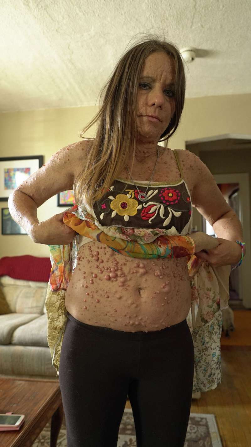 2018年01月20日美國45歲女子Libby Huffer有著異於常人的痛苦經歷,5歲時就被確診患有罕見型的神經纖維瘤一型。10歲時她全身長滿數百顆良性腫瘤,最可怕的是懷孕後荷爾蒙分泌變化導致全身長滿6000多顆腫瘤。