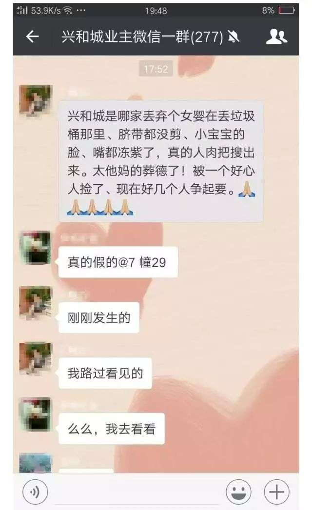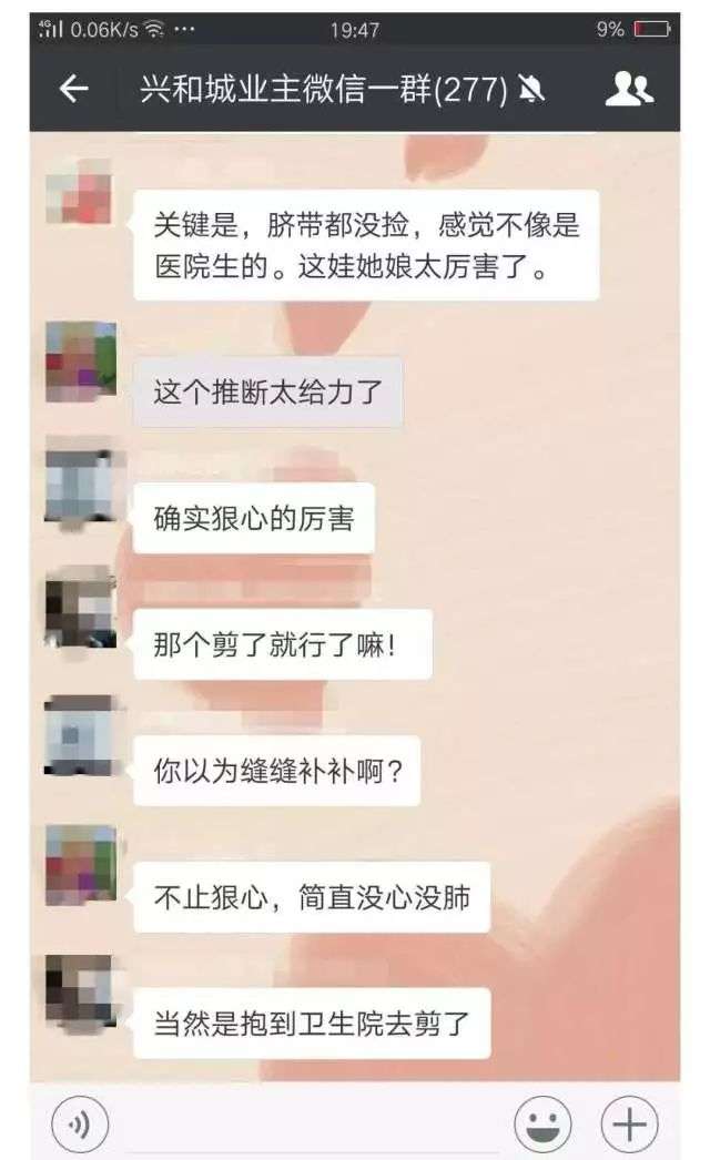 ▼這件事情發生後,當地的微信群組也討論起這件事情,有人從女嬰的臍帶未剪斷來看,推測出女嬰應該是在家裡生出來的。