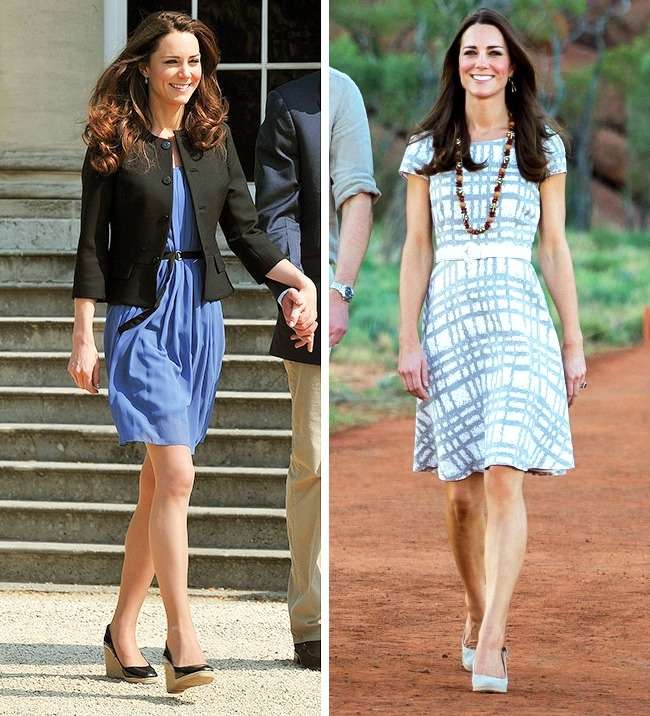 ▼凱特王妃(Kate Middleton):她經常穿平價服飾,比如Zara的夾克和藍色洋裝(左圖),還有Hobbs的45美元(約新台幣1375元)洋裝(右圖)。她熱衷慈善事業,協助退伍軍人、街友,還有其他需要幫助的人。