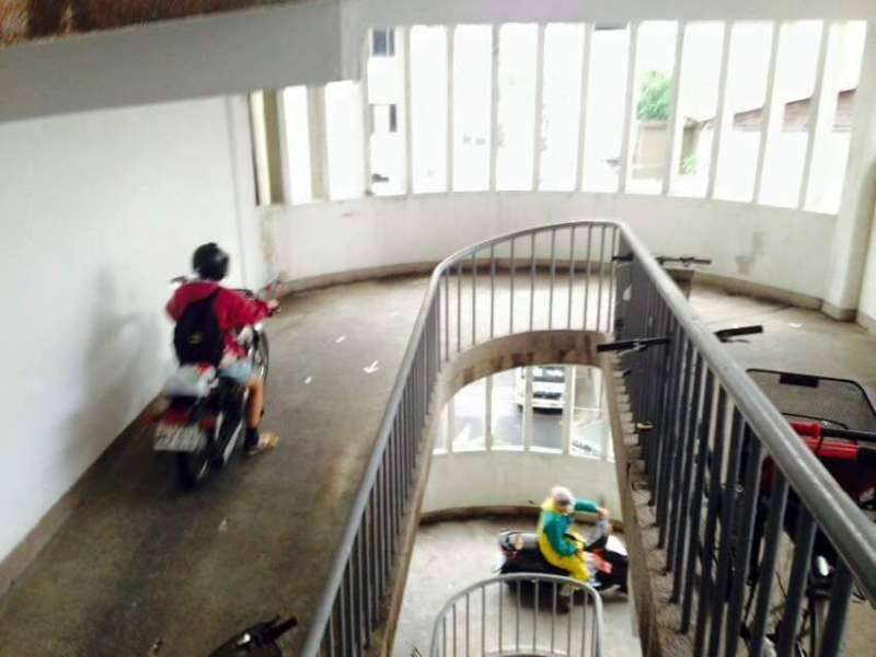 ▼近日有網友在臉書《爆料公社》分享了這棟建築物:「家住四樓,不搭電梯不走樓梯,機車直接騎上樓!台北神奇建築!」只見住戶都戴著安全帽,騎著機車轉過一圈圈的通道上下樓,真的太方便了。