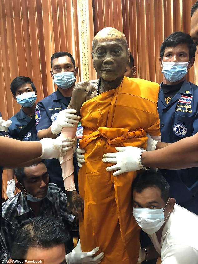 ▼他圓寂2個月後,弟子將他的遺體從棺槨中抬出來,準備換衣服,但看到遺體的一刻,大家都很吃驚。