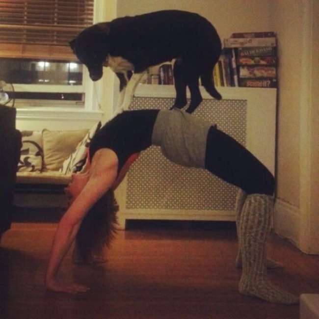 ▼家裡有寵物的話,做運動很有樂趣。