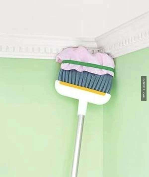 ▼8、把毛巾綁到掃帚的底端可以幫助你清理高的、你夠不著的地方。