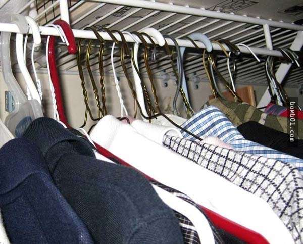 ▼18、用衣架去擺脫那些不穿的衣服。把不穿的衣服倒著掛,你穿的衣服正著掛。這樣你就可以看到你不穿的衣服。