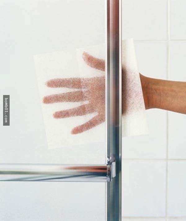 ▼4、用除靜電紙去除玻璃門上的灰塵。