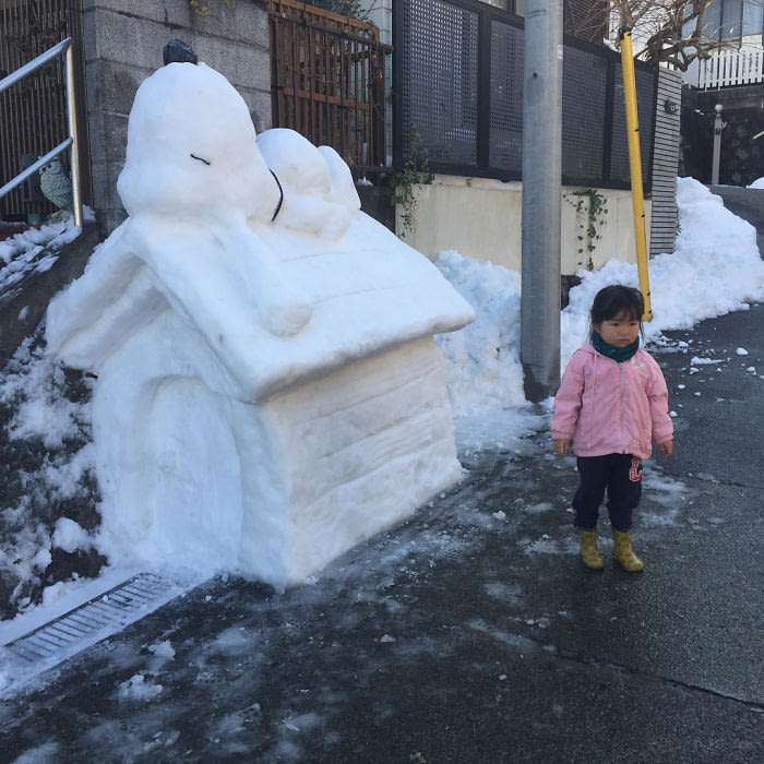 日本的雪人太有特色了,走在街頭就像來到了漫展一樣,什麼樣的動畫角色都能看到呢~