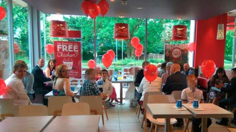 ▼因此他們彼此都同意將婚宴舉辦在這家位於西密德蘭郡(West Midlands)的肯德基內,除了可以享用他們最愛的炸雞之外,還可以省下許多花費。