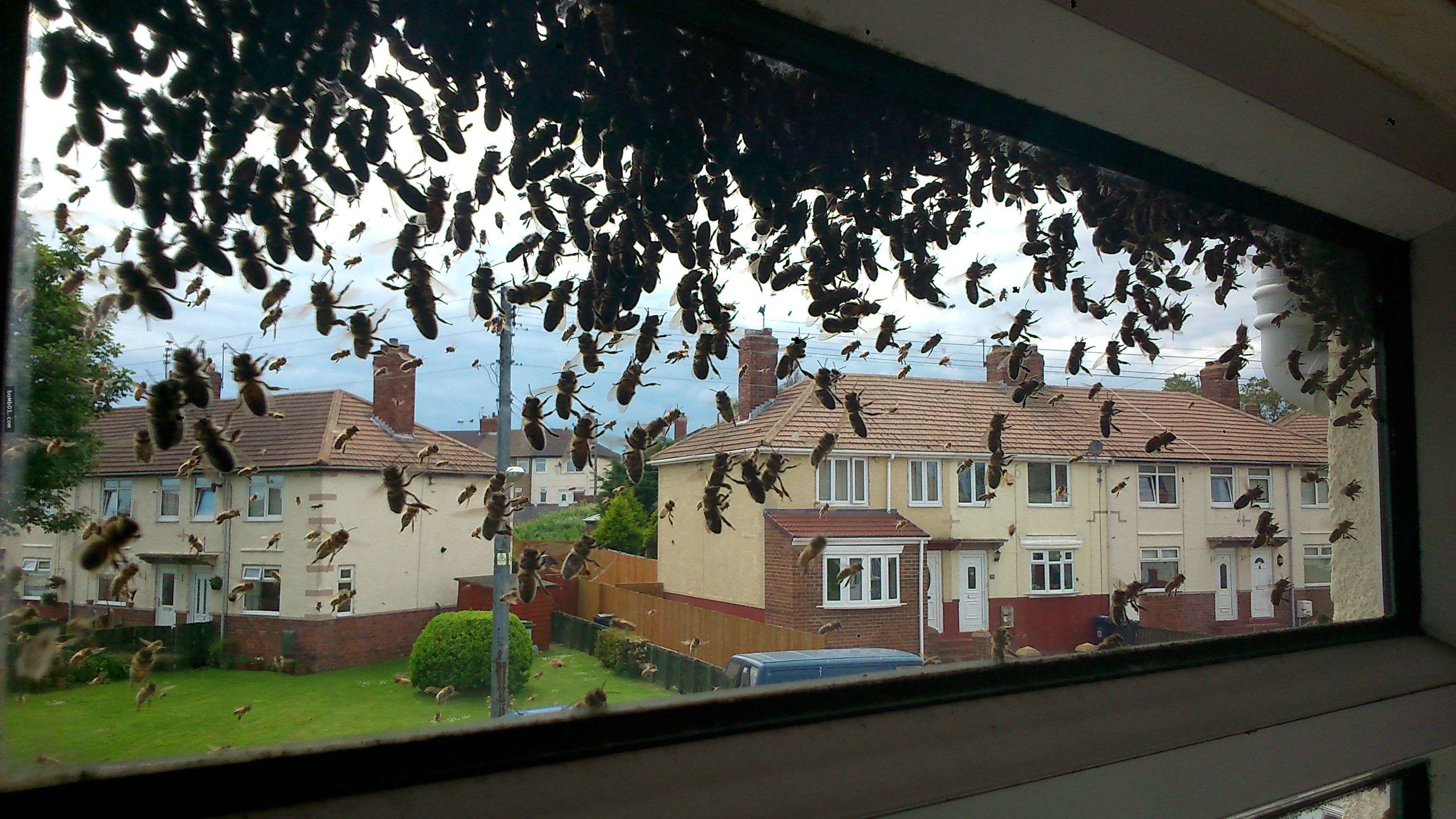 數天後,當他透過家裡的一面窗戶往外看的時候,他看到他所在街道的上空,飛滿了嗡嗡響的蜜蜂。他放回到自然中的這種看似無害的昆蟲,實際上正在數以千計的集聚起來入侵他周圍的房子。來看看當一群蜜蜂試圖接管你的房子的時候,那是什麼樣子!