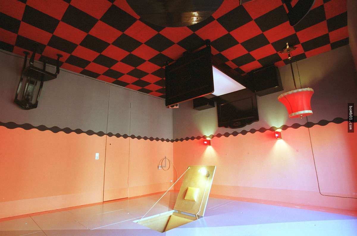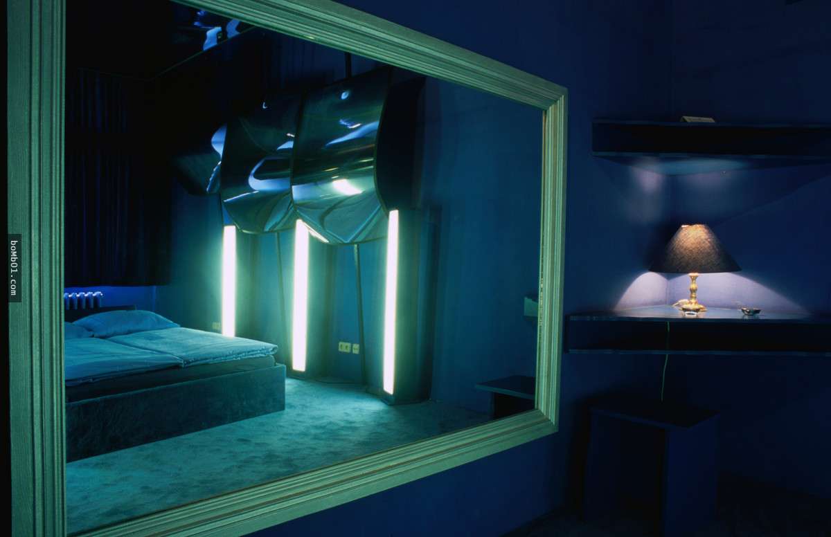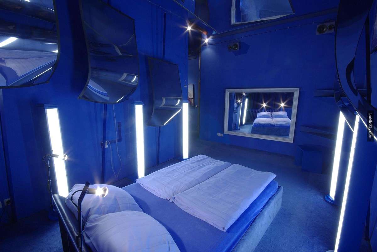 ▼看似普通的房間,整間是藍色的,牆上和天花板都有鏡子。
