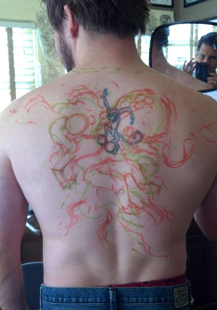 最近,37歲的他終於鼓起勇氣,找到一個比較可靠的刺青師,本來說只要把猴子蓋住就好,沒想到成品出來意外地超狂!