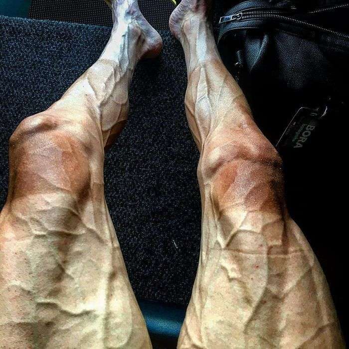 ▼自行車選手完成環法自行車賽時,腿是這樣的。