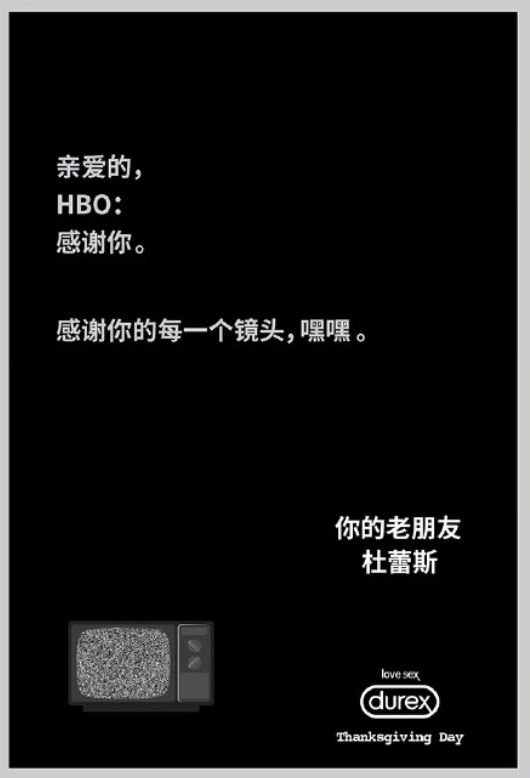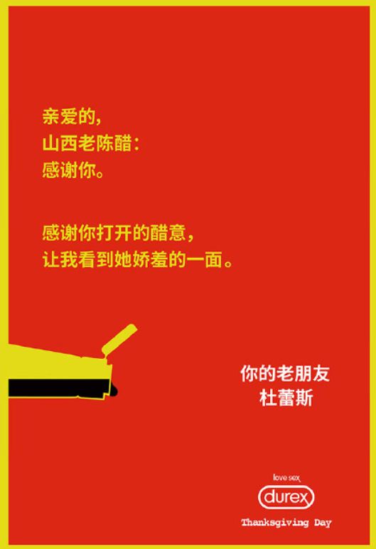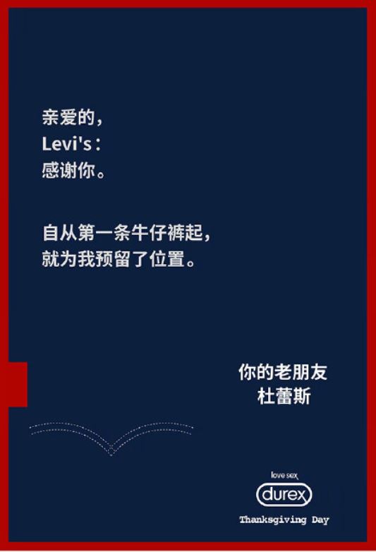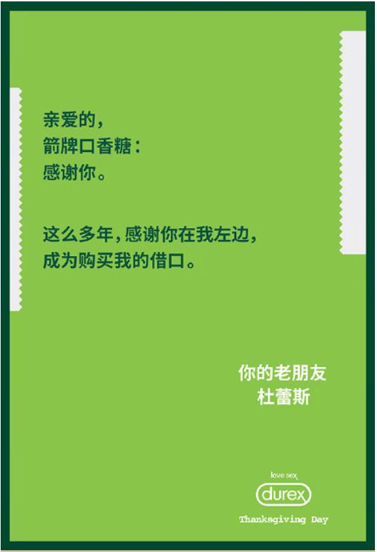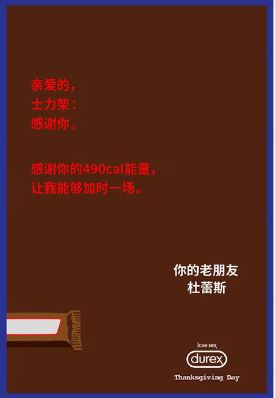 除了杜蕾斯感謝的品牌之外,也有品牌如法炮製相同手法,感謝杜蕾斯。真是讓感恩節多了許多曖昧的氣氛。