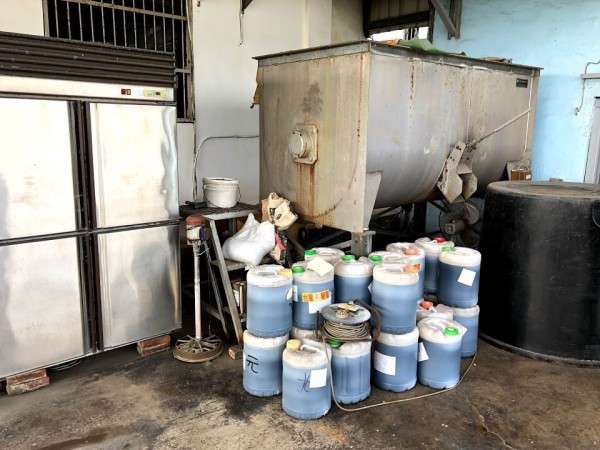 ▼警方也循線追查到地下工廠,發現該處環境髒亂,且所謂的「生物酵素」就是黃豆水的調合物,成本僅200元!