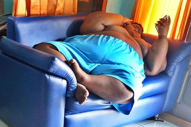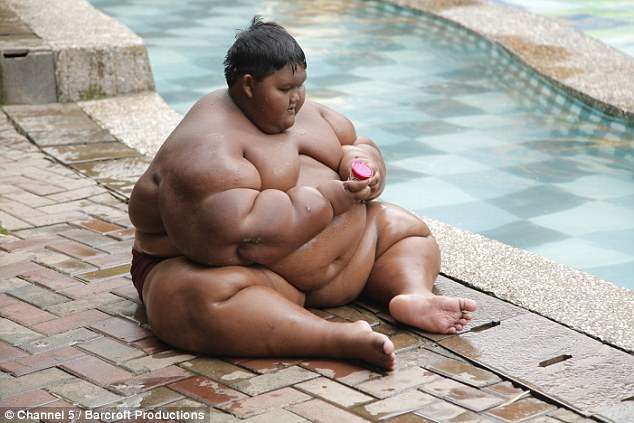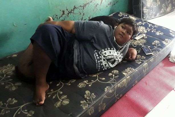 ▼Arya太能吃,又不愛動,5歲開始就在發胖的道路上越走越遠。胖到190公斤後,他連走路都很困難,只能待在床上,做什麼事都要家人幫忙。他沒有合適的衣服穿,大多數時候就圍著一件圍裙。醫生警告說,再不減肥他會把自己吃到胖死。