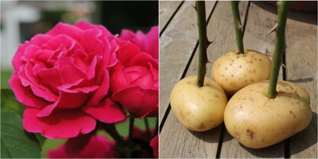 將剪下來的玫瑰枝幹插在馬鈴薯上會更有利於玫瑰花的生長。馬鈴薯中的水分和營養物質能使根部發育更健康。