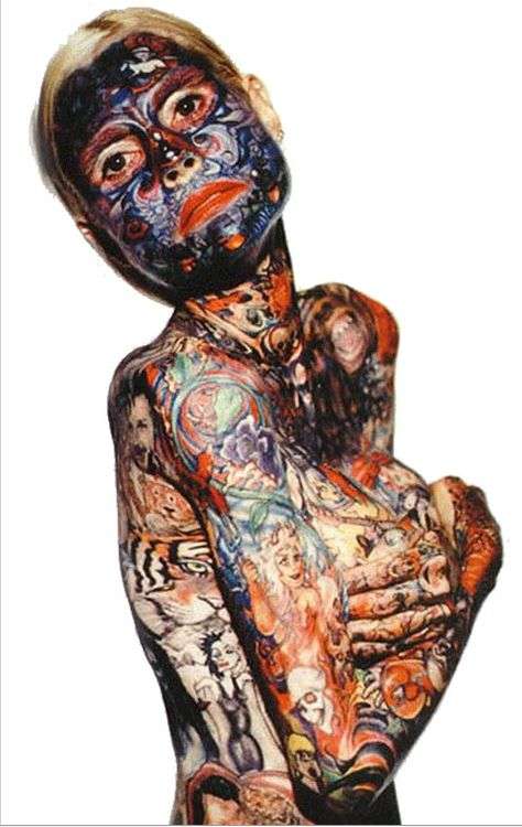 ▼3. 全身都是刺青的女人─Julia Gnuse1955年出生於美國,35歲時得到了一種罕見疾病─紫質症,2016年去世。這個疾病讓她全身出現水泡,為了掩蓋這些痕跡,她開始刺青,甚至發展出對這個刺青的熱情,她也因此被稱作「畫報夫人」,而她的名字也在金氏世界紀錄中永久留存著。同場加映:全身刺青的男人