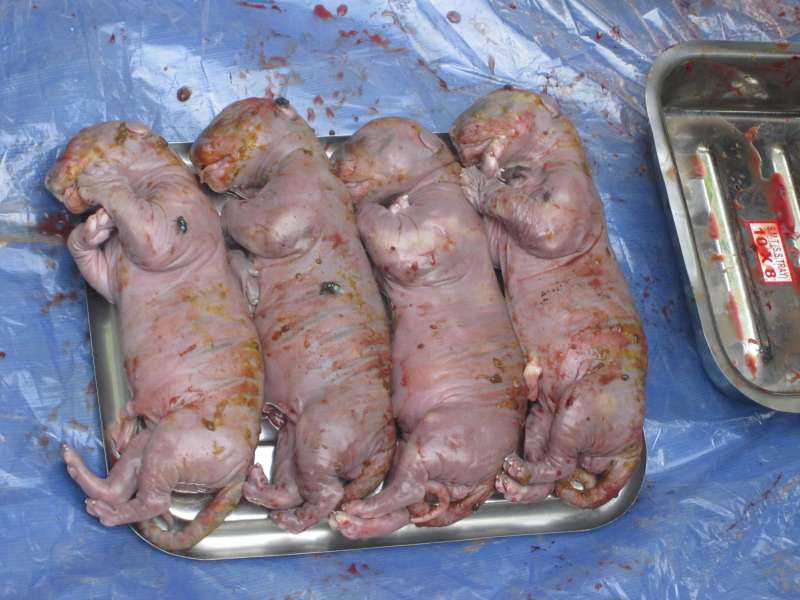 ▼更讓人詫異的是,這隻母老虎原來懷孕了,獸醫立刻對老虎屍體進行剖腹,從中取出了四隻虎寶寶。