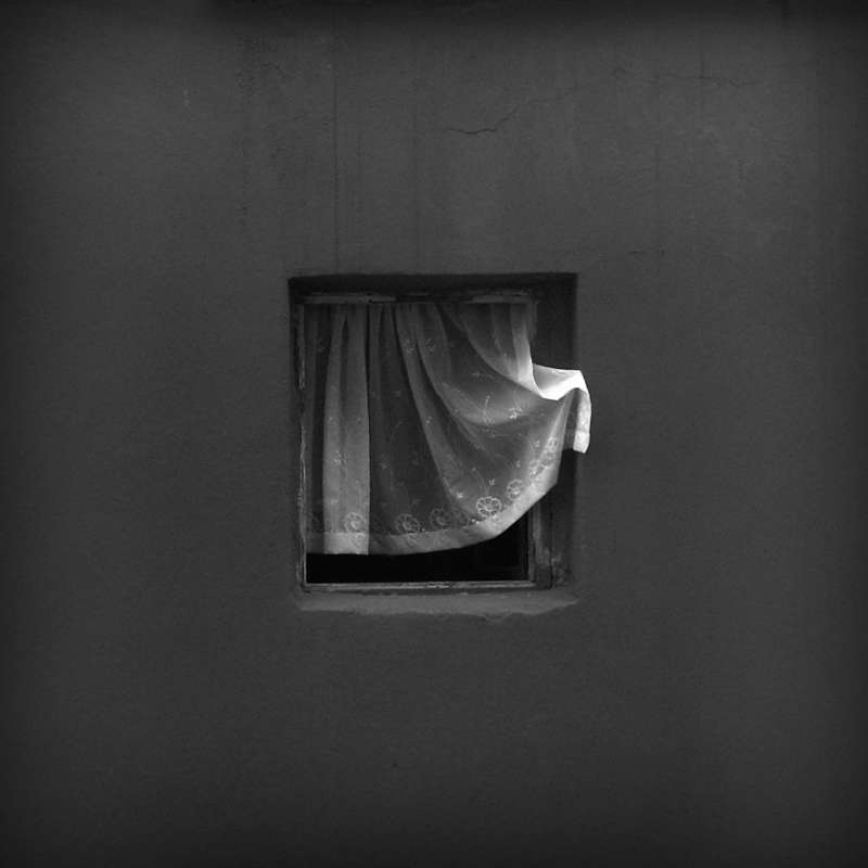 ▼在黑夜中,這扇窗戶彷彿有了自己的靈魂,窗簾隨風一張一合,對著攝影師說話…