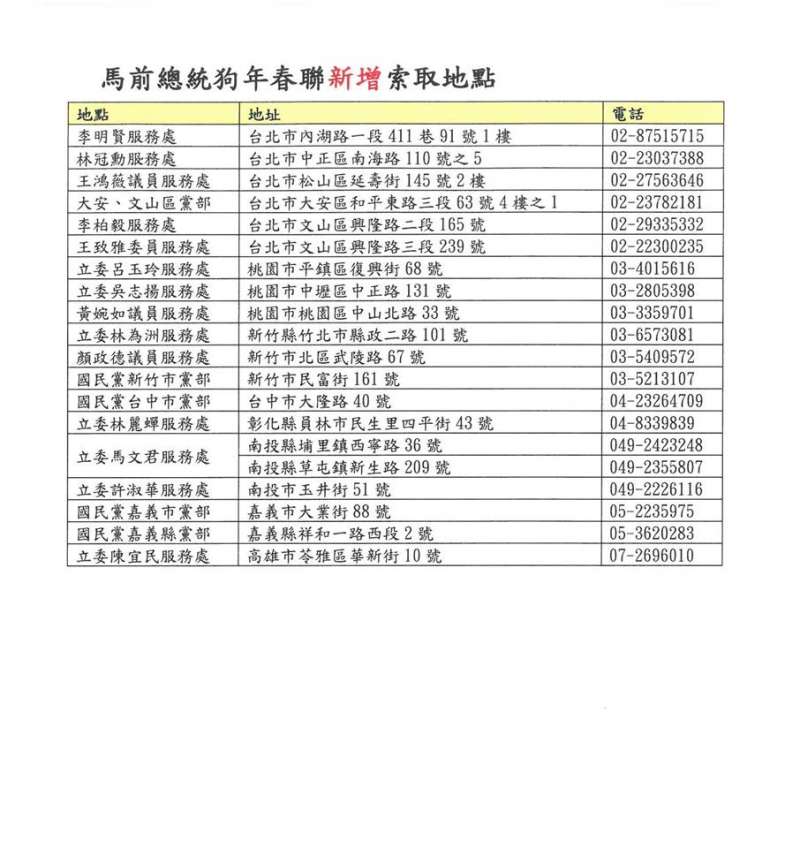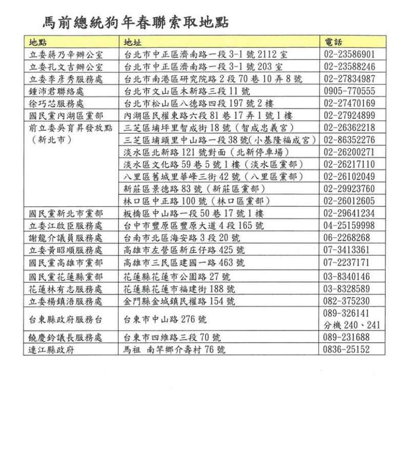 ▼以下就是馬前總統所寫的狗年春聯索取地點: