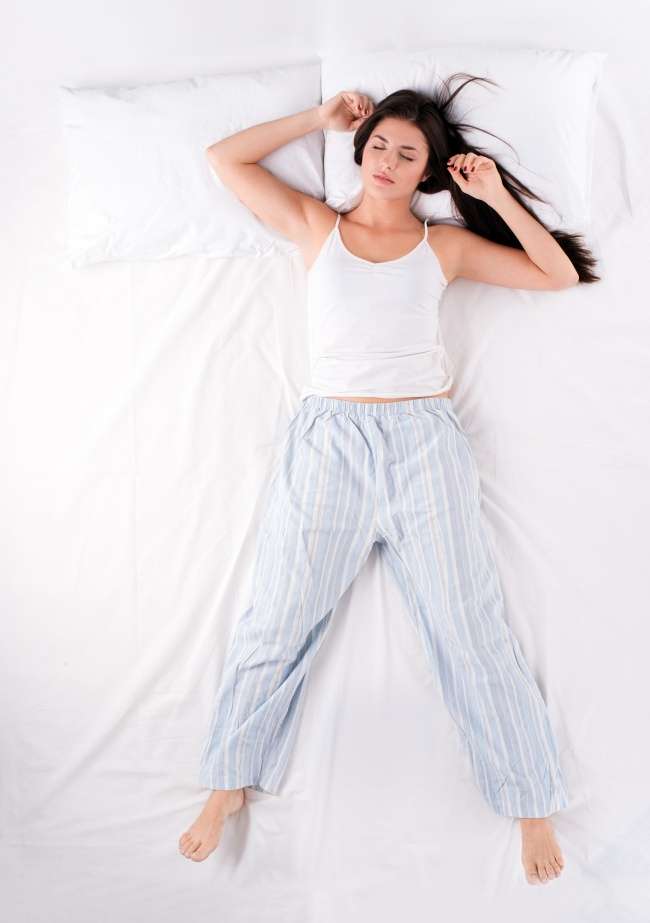 ▼2.海星睡姿:仰臥著睡,身體躺平,雙臂向上伸到肩上。