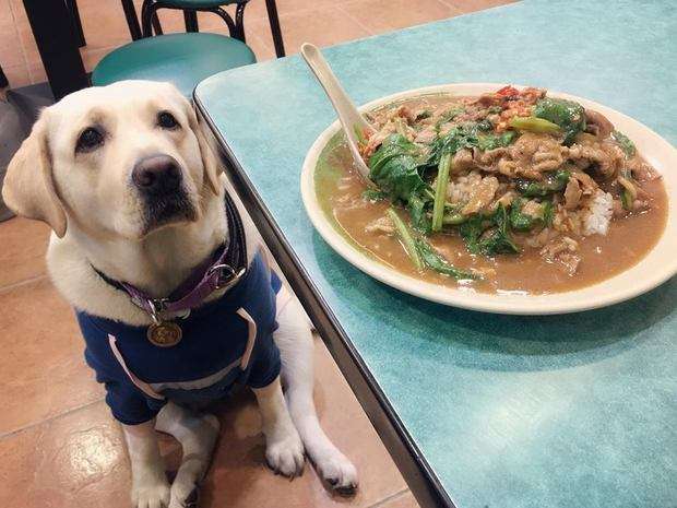 拉布拉多體型比較大,卻非常溫柔,但不了解狗狗的人還是會被牠們嚇一跳。前幾天,臉書粉專「那隻拉拉Go+是顧呷」分享了自己的經歷。那天把拔帶拉拉去買晚餐,牠看到隔壁桌上有食物,就忍不住湊過去討食。