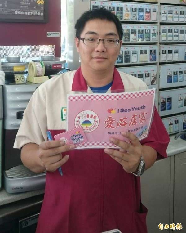 ▼高雄鳳山區的青年國中調查弱勢學生約有300人,校方擔心學生們寒暑假沒飯吃,就與超商俊瑋店的店長龔俊安合作,推出「i See Youth」愛心卡,只要學生持卡就能免費領餐,後來附近的13個店家也加入,成為社區的愛心商店。